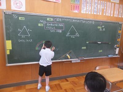 3年算数。こちらも自分たちで課題を書き、自分の考え方を説明しています。