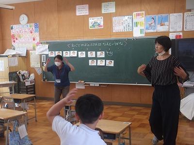 1,2年の英語。体の部分を英語で言ってゲームをしています。