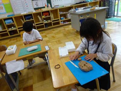 【1・2年生図工】粘土でパンを作りました。いろいろな形のパンができました。