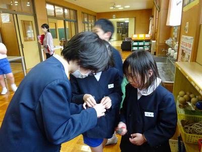 【昼休み】けん玉やお手玉をして、いろいろな学年のお友達と仲良く遊んでいます。