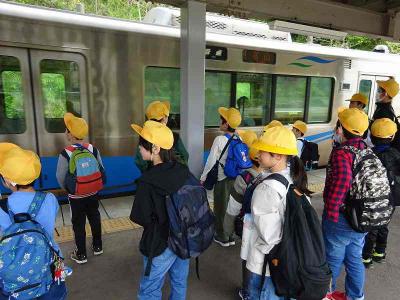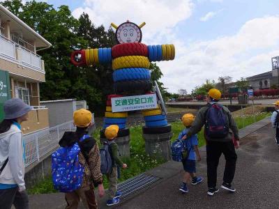 電車にも乗り、タワーを目印にしながら元気に歩き、クロスランドおやべに向かいました。