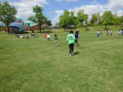 広い芝生で、5・6年生が中心になって企画したなかよし遊びを行いました。「だるまさんの一日」や「コンセント鬼ごっこ」をたてわりグループで楽しみました。