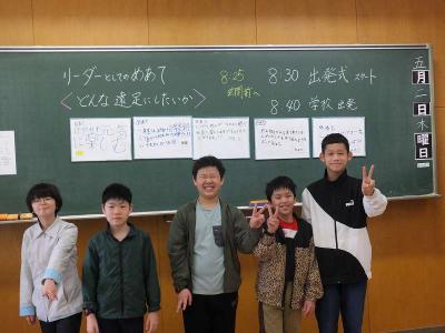 学年ごとにめあてをもって、当日を迎えました。5・6年生は、「低学年も仲よく遊べるようにがんばりたい」「1年生は、小学校初めての遠足なので、楽しいものになるようにがんばりたい」と、リーダーとしてのめあてをしっかりと持って臨みました。