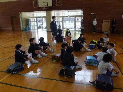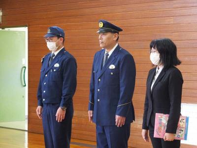 4月15日、津幡警察署・俱利伽羅駐在所の方々にお越しいただき、防犯教室を行いました。不審者に声かけされた場合の実の守り方を教えていただきました。
