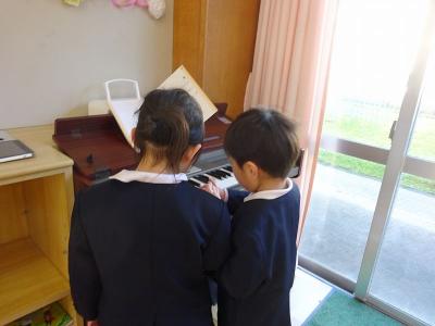 【休み時間】1・2年生が一緒に仲よくオルガンを弾いています。