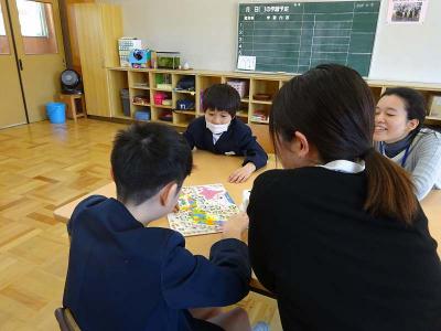 【あすなろ・すみれ学級】さいころの目を見て、テーマに沿ってお話をしました。なごやかにお話ができました。