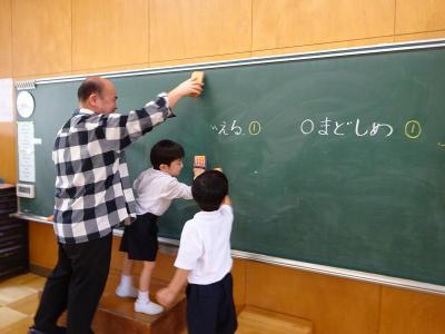 【1年生】黒板を消すお仕事もしっかりとやっています。