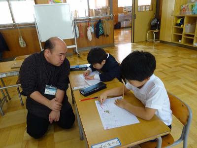 【1年国語】ひらがなの学習 なぞり書きしたり空中で書いたりしながら、形をとらえました。