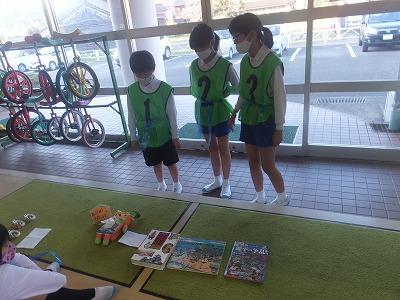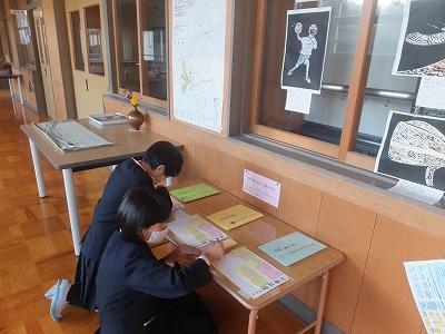 図書室で新しい本を読みながら、クイズの内容を相談していました。