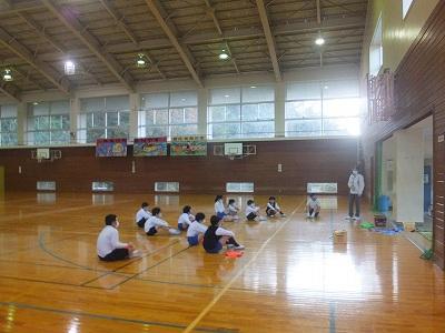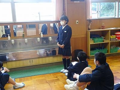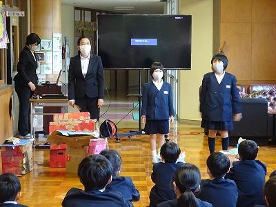 6限に学校集会・児童集会を行いました。寒くなってきたので、1階のワークスペースで行いました。