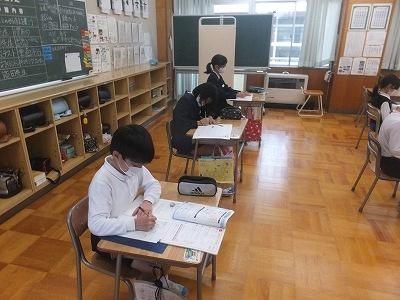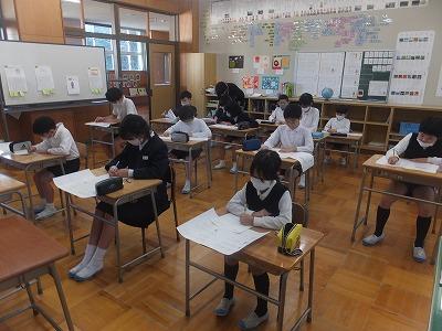 5年生は学力テストの日です。鉛筆をぴんぴんに削って気合いが
