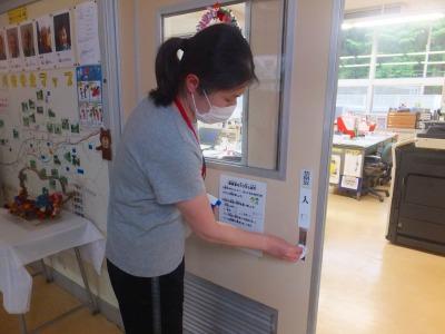 研究の後は・・・毎日のセレモニー。校舎のあちらこちらを消毒です。ありがとうございます。