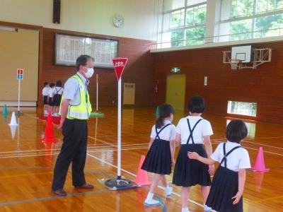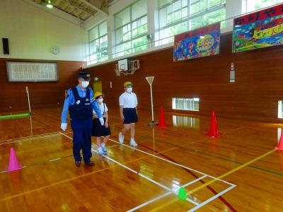 その後、警察の方々、交流経済課の方々に自転車の安全な運転の仕方、横断歩道の歩き方を ご指導いただきました。