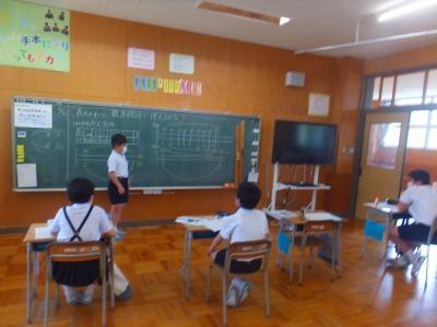 8/5 今日も全員元気です。友達の考えを聞き、考える。