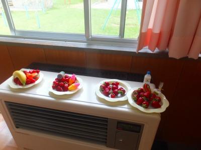 いただいた西瓜たちは、玄関にて おめかしをして子どもたちに食べられるのを楽しみに?!待っています。