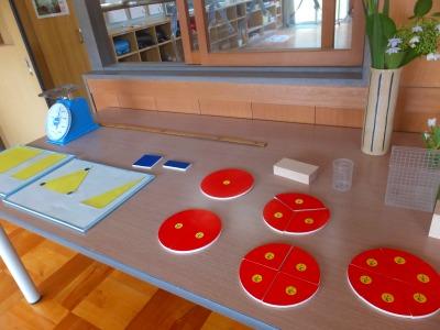1年生の算数。足し算、ブロックを両手で合わせる動作をつけて学びました。しき、こたえも書けるようになりました。