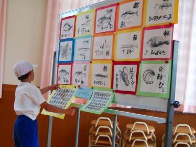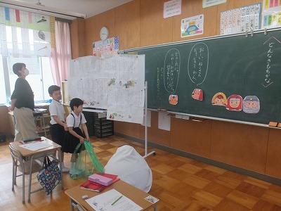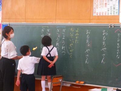 1年生も、ずいぶんひらがなが書けるようになりました。 前へ出て、説明もがんばっています。