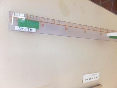 こちらは 2年生。デジタル教科書を使って、ものさしの正しいはかり方を説明しています。