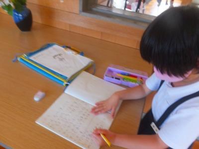 学びの足跡をノートにしっかりと。 アイディアを出し合いのびのび楽しむ学習も有り。