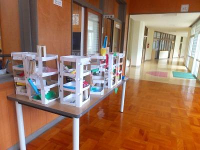 高学年の教室付近には、社会科の成果物、家庭科の成果物。