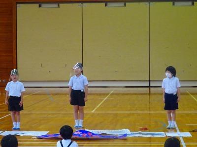 始めにパトロール隊の方々の紹介式。お一人お一人よりお言葉をいただきました。児童代表がご挨拶をしました。