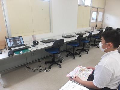 英語の先生と、透明マスクをつけての授業。表情が見えてよかったです。透明マスクは もっと改良して使いやすいものにしたいです。