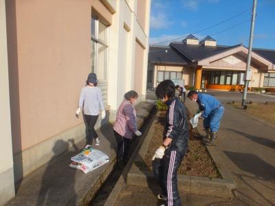 昼、本日は全校で、花壇の手入れ。