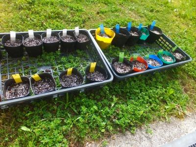先週まいた花や野菜の種。お行儀よく勢ぞろいです。