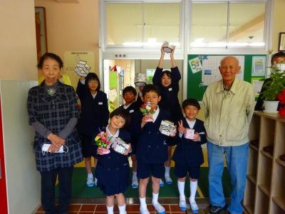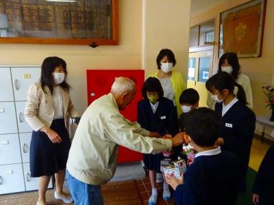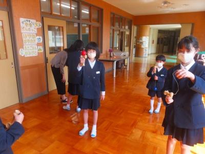 例外的登校で残っていた児童が代表でいただきました。