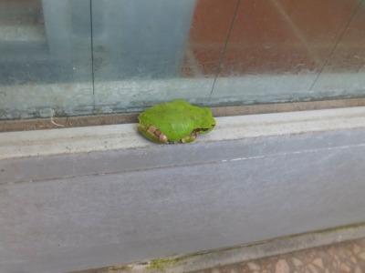 かえるくんも、みんなの登校を楽しみに、玄関にかえってきました。