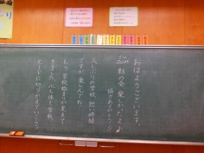 さて、明日の登校を前に、5,6年生は4回めのオンライン朝の会を行いました。