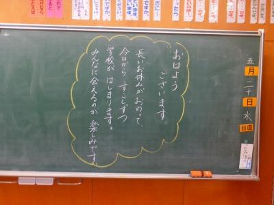 5/20 学校再開にむけて、本校では今日から3日間、全校児童20名が1時間のみ登校します。