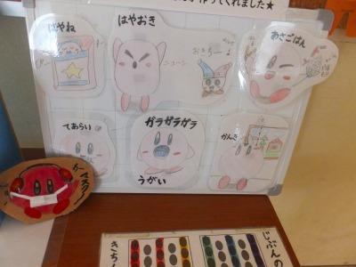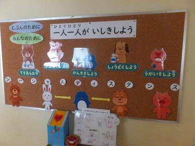 検温表を出し、消毒をし、職員室にて一人一人「先生方、おはようございます。