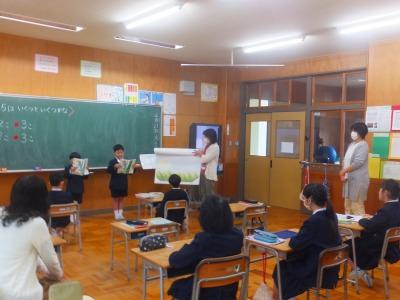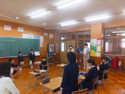 聞き手は登校している1年生、3年生、4年生と先生方です。