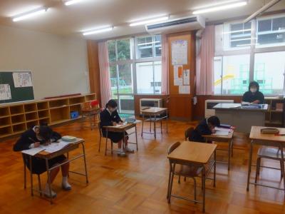 児童のいない5,6年教室も、いつ学校が再開してもいいようにスタンバイしています。