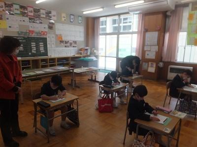 本日は、5年生以外は校内学力テスト(国・算)があります。