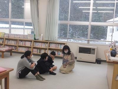 図書館司書の先生による読み聞かせ。七草がゆのお話や かさじぞうなど