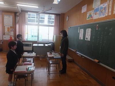 研究主任より、学習のめあて「つないで話そう」のお話。