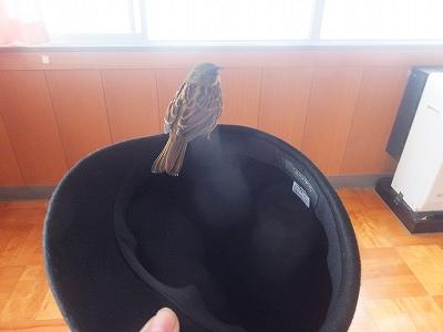 なんとか外に出してあげたいと、帽子をそっと近づけて
