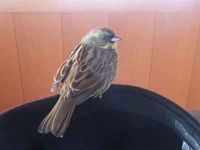 窓の外へ「飛んで」と、帽子ごと出すと、いちど飛んで私のマフラーに止まり、