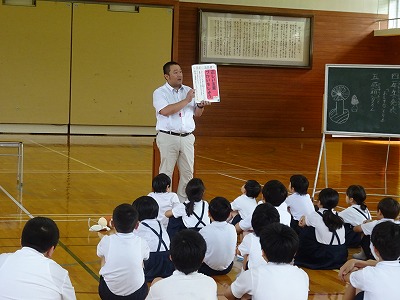 津幡警察署、町安全協会、倶利伽羅駐在所より四名の方々にご来校いただき、