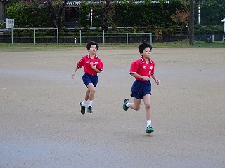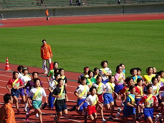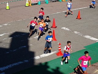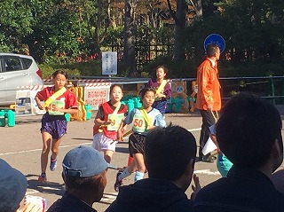 5年女子の石山さんは、98チーム参加の第1走者として出場し、67位と健闘しました。タイムも自己ベストを50秒ほど縮めた6分6秒でした。男子記録会に参加した2人は、抜きつ抜かれつの走りをして、132人中、加藤さんは5分51秒で40位、山﨑さんは5分52秒で43位でした。2人が互いに刺激しあって良い結果を出しました。