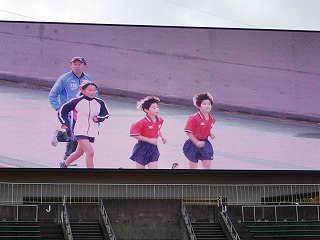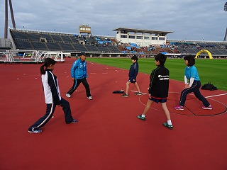 今年も全日本大学駅伝に参加したことのある保護者の石山さんが、当日の朝ご指導くださいました。陸上競技場を見渡し、全体のイメージを組み立てます。