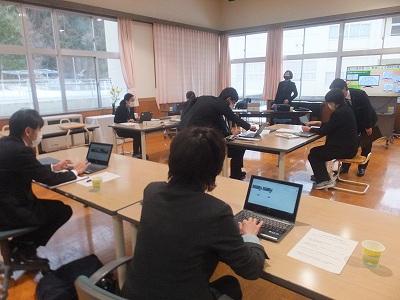 放課後、先生方は、会議。今年度の 研究のまとめをがんばっています。