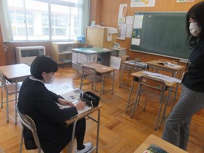 2年生が、自分たちの作った詩を1年生に発表しようと、リハーサル中。