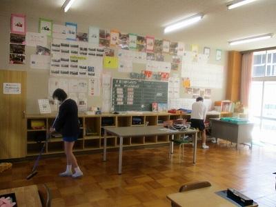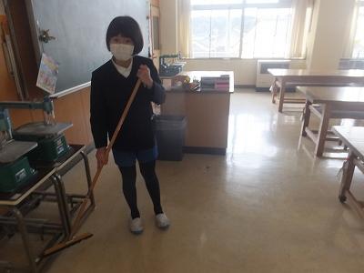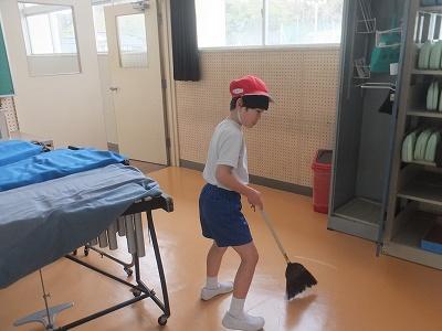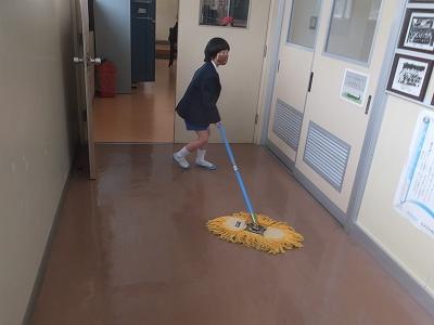 そうじ。一人で受け持つ範囲がとても広いですが、みんなもくもくとがんばっています。