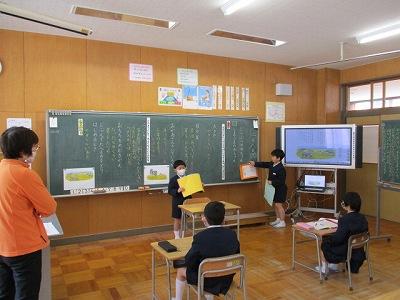 4年生、算数 学習ガイド役の児童のリードで進めています。