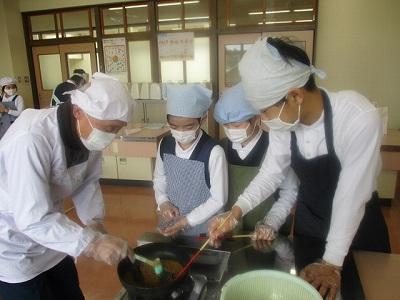 3,4年生が、総合の学習で育てた「おまん小豆」を調理しました。