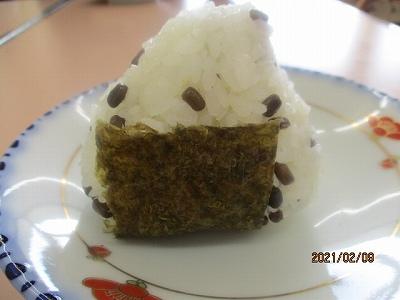 おまん小豆茶、おまん小豆入りおにぎり、おまん小豆の白玉ぜんざい。
