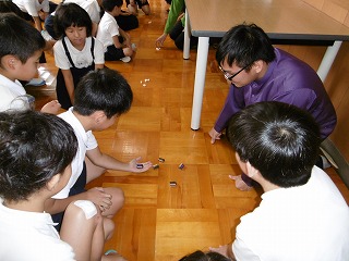 子供たちは英語で自分の名前と好きな物を話し、自己紹介をしました。その後、留学生の皆さんの話を聞いたりマレーシアやモンゴルの遊びをしたりして、交流を深めました。